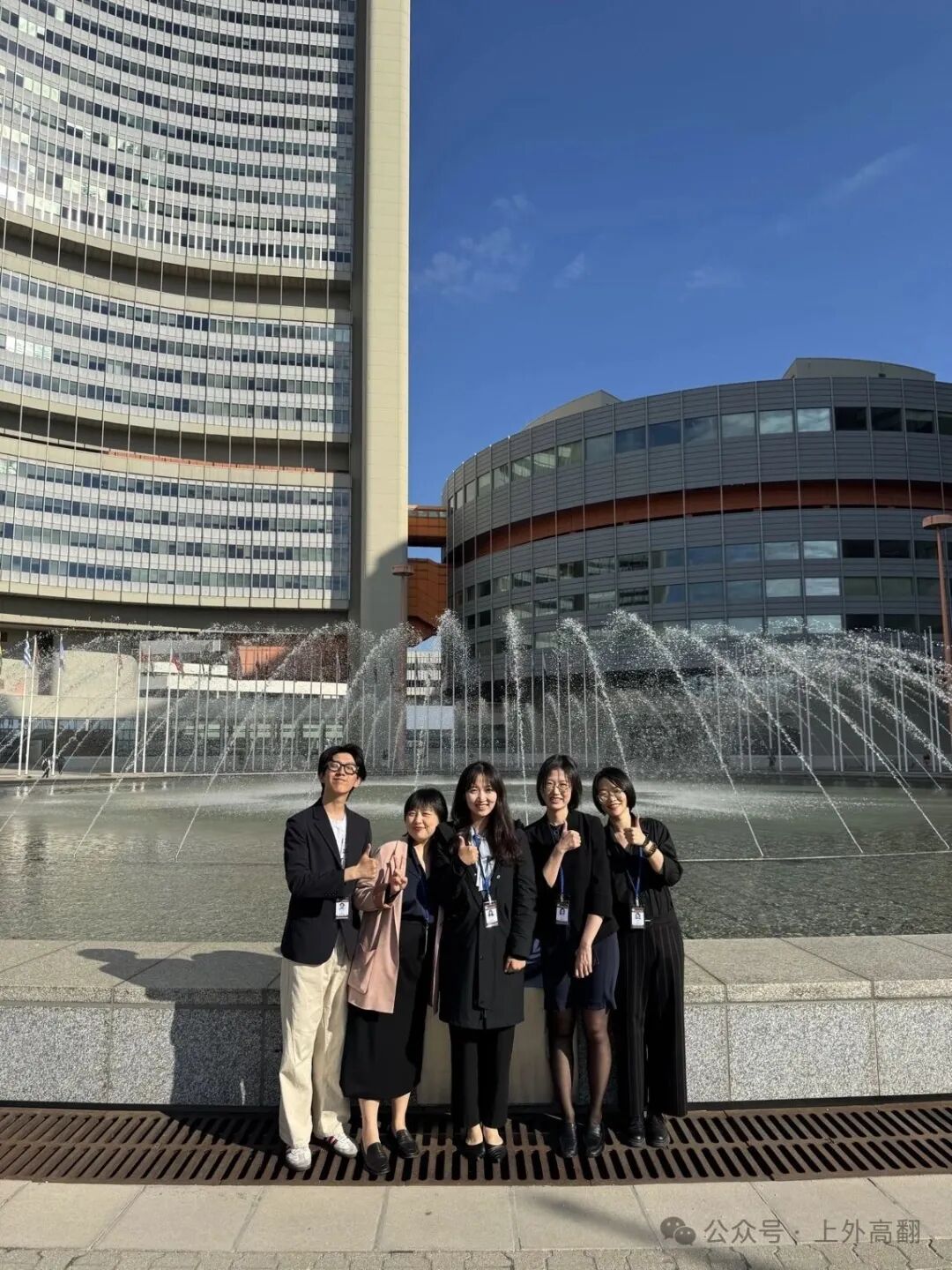 2025年5月12日至17日,上海外国语大学高级翻译学院会议口译专业二年级学生在带队教师巩婧恬的带领下,赴奥地利维也纳联合国维也纳办事处(UNOV)开展同声传译实习。该项目依托上外与联合国签署的谅解备忘录(MoU)及学院会议口译专业教学大纲设立,旨在通过沉浸式培训、真实语境演练,夯实学生会议口译实战能力。