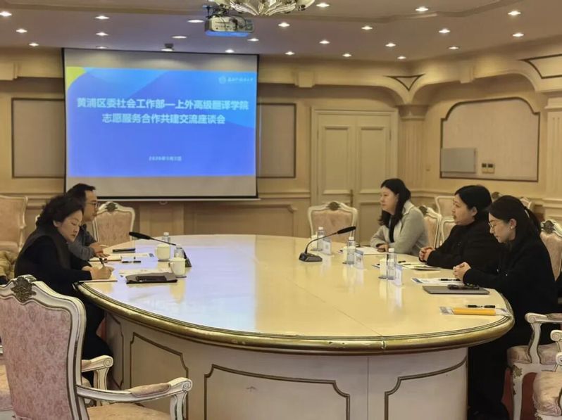3月2日下午,在上海外国语大学团委指导和支持下,上海外国语大学高级翻译学院与上海市黄浦区委社会工作部志愿服务合作共建交流座谈会在虹口校区凯旋厅举行。双方围绕深化地校合作进行了深入交流。黄浦区委社会工作部部长刘方、副部长江健,上海外国语大学高级翻译学院党委书记葛忆翔、校团委书记叶玮、高级翻译学院党委副书记王瓅苑出席座谈会。