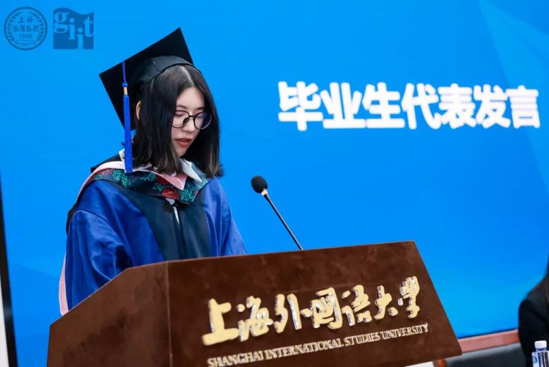 刘宏莉作为毕业生代表发言,分享在高翻的求学感悟。她深情回望在高翻日夜深耕、磨砺成长的时光,感恩师长包容试错、悉心指引,让自己从青涩懵懂练就从容笃定的专业底气。她分享了未来将投身国际化市场领域,以翻译搭建桥梁的职业规划,阐释语言传递信息、跨界连接价值的共通内核。她与全体同学共勉:带上高翻赋予的笃定之心,在科技发展的浪潮里,在祖国发展的征程上,以青春之我勇担使命,在时代浪潮中奋力拼搏、逐梦前行。