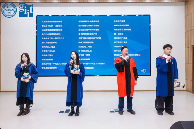 典礼尾声,吴刚老师与毕业生代表共同唱响经典歌曲《凤凰花开的路口》。悠扬的旋律承载着青春记忆与同窗情谊,动人歌声里,师生共同珍藏此刻的温暖与感动,也向彼此致以最真挚的祝福。