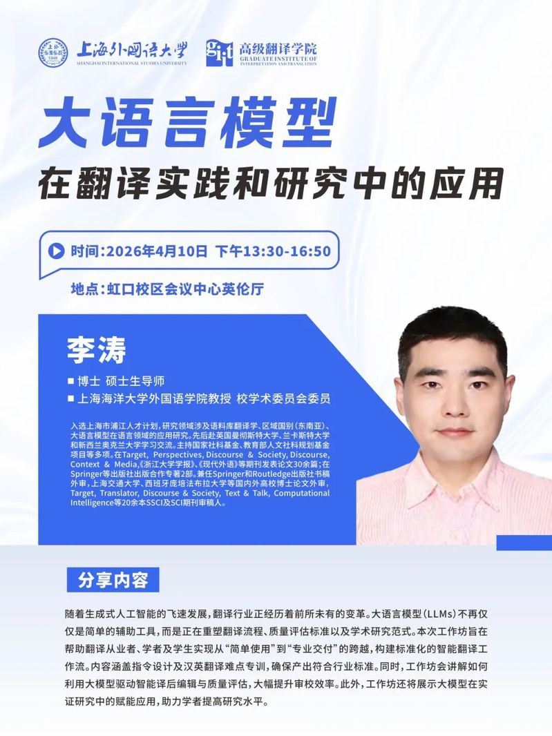 讲座预告 | 大语言模型在翻译实践和研究中的应用